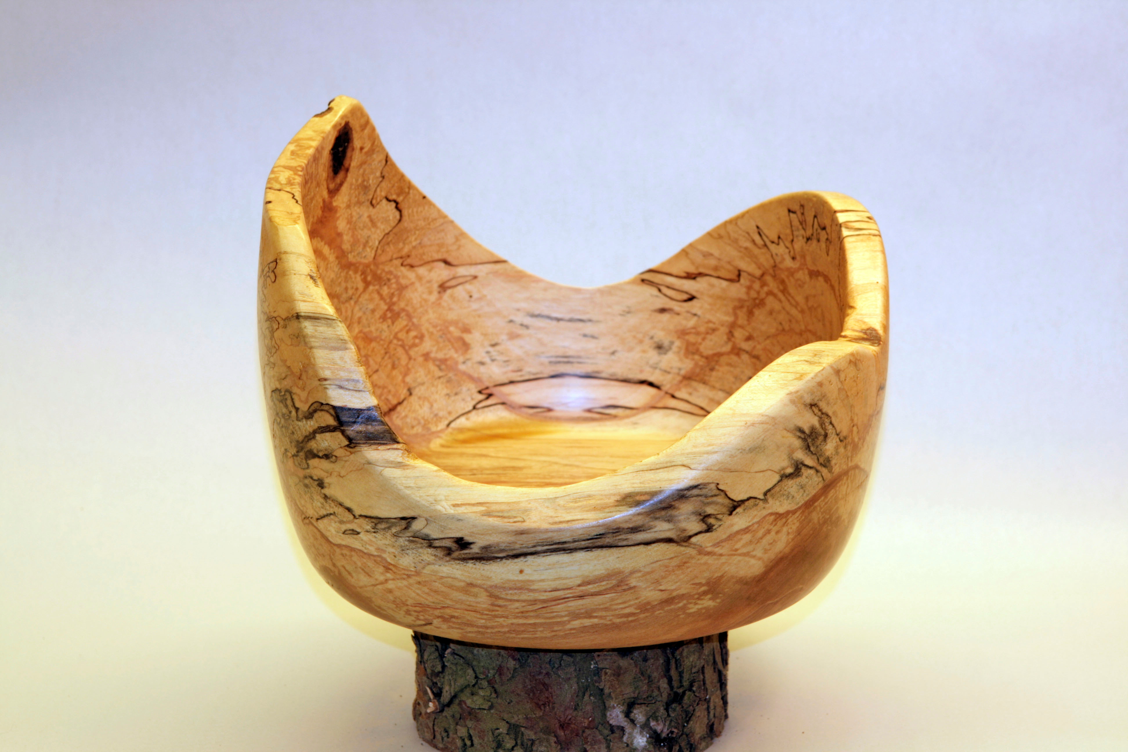 128. Spaltet birk d. 24,5cm. h. 17cm.